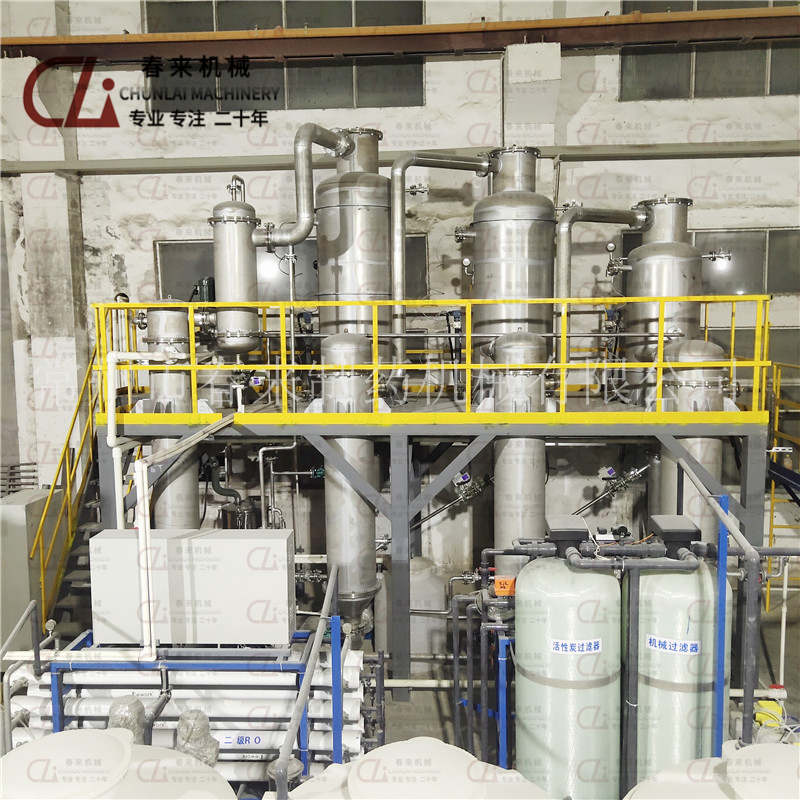 原液进料首先经过预热器,然后进入蒸发器,将预热部分和蒸发部分分开,使蒸发器列管全部用于蒸发,提高了蒸发器的蒸发效率。原液分级预热充分利用了低温蒸汽的潜热提高了热效率。